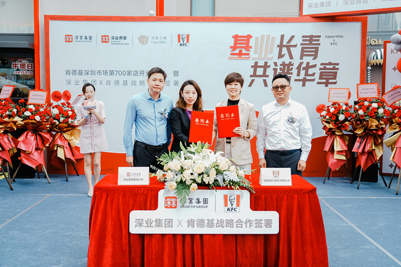 2023年5月24日,肯德基深珠琼桂市场第700家店在深圳市福田区深业上城开业,标志着肯德基在深圳市场的发展迈向了一个新的里程碑。在开业庆典上,深业集团有限公司(简称“深业集团”)与百胜餐饮(深圳)有限公司(简称“深圳肯德基”)正式签订战略合作协议,双方将强强联合携手共建,利用各自优势资源开展全面战略合作,为深圳的经济繁荣和商业发展注入新的动力。